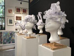 De ontwerpen zijn ontstaan met vallen en opstaan: door te onderzoeken welke mogelijkheden het materiaal biedt en welke niet. Docent beeldend Geert Hoetink: ,,Plots was daar de kans om werkstukken van mijn leerlingen uit klas M3b te exposeren bij de artotheek in Slochteren. Die kans heb ik met beide handen aangegrepen. De klas had net werkstukken afgeleverd van een uitzonderlijke kwaliteit en ik zocht naar een manier om ze aan een groter publiek te tonen, toen de artotheek zich aandiende. Trots zijn mijn leerlingen, is de school en ben ik dat we op een podium van kwaliteit (een puike collectie) naar voren mogen treden. Ik hoop dat deze kennismaking tussen het dr. Aletta Jacobs College en ARTOS Kunstuitleen & Expositie zal leiden tot een verdere samenwerking. De artotheek kan voor de school zowel een podium als een bron zijn, omgekeerd kan dat ook.’’