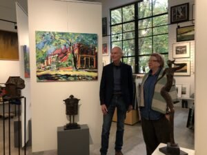 Wij mochten al even een voorproefje nemen, voordat de duo expo vrijdagmiddag 1 november officieel wordt geopend. We zagen dat de tentoonstelling met bronzen beelden van Wiea en veelal kleurrijke schilderijen van Reinder een prachtige impressie van werk is dat je direct pakt: levendig, vrolijk, krachtig, realistisch en soms ook met een knipoog of diepere boodschap.