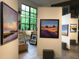 De expositie ‘Verliefd op verf’ bevat onder meer werk dat is gemaakt in de weidsheid van het Hogeland en werk dat is geschilderd aan de Waddenkust. Daarnaast is er ook kleurrijk werk te zien dat is geschilderd langs de oevers van de Drentsche Aa, aan de boorden van het Zuidlaardermeer en in natuurreservaat ’t Roegwold.
