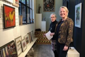 In het kader van de kennismaking met organisaties in Midden-Groningen bezocht burgemeester Erica van Lente onze artotheek. Aan de koffietafel ging ze in gesprek met de vrijwilligers die ARTOS Kunstuitleen & Expositie runnen. De artotheek was voor de burgemeester geen onbekend terrein omdat ze er zelf sinds vorig jaar ook kunst huurt.